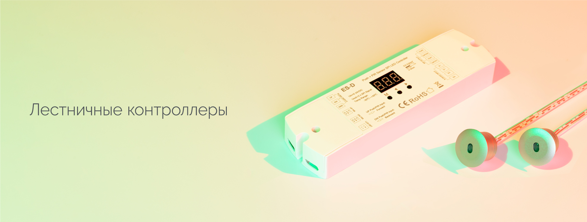 Контроллеры для создания динамической подсветки лестниц. За счет пошагового включения светодиодных лент, установленных в ступени или перила, можно настроить различные динамические эффекты и таким образом превратить лестницу в произведение искусства.