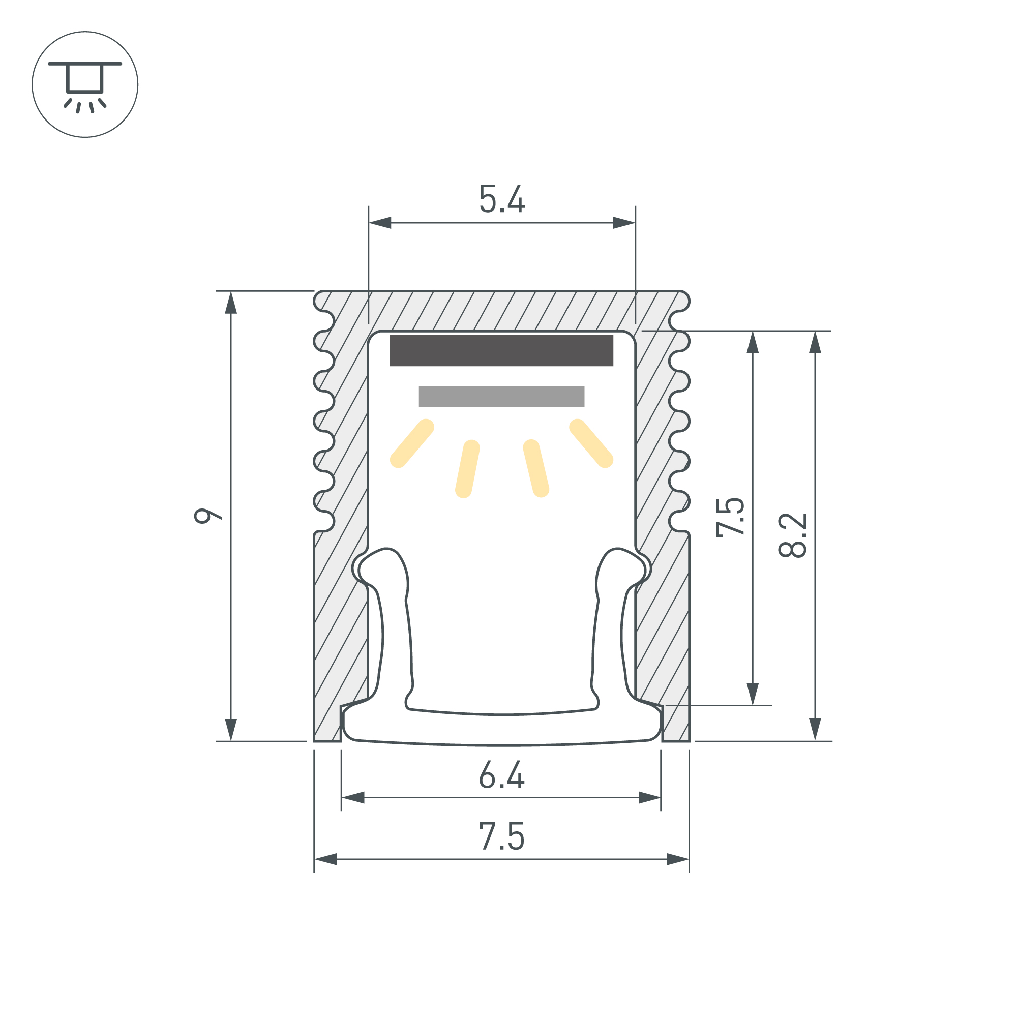 Накладной микро-профиль из анодированного алюминия для подсветки мебели, пазов, ниш и других элементов интерьера. Габаритные размеры профиля составляют 2000 мм в длину, 7,5 мм в ширину и 9 мм в высоту. Площадка для установки светодиодных лент позволяет использовать ленту шириной до 5,4 мм и мощностью до 8,9 Вт/м. Это обеспечивает гибкость в выборе светодиодных лент и создает потрясающие световые решения.