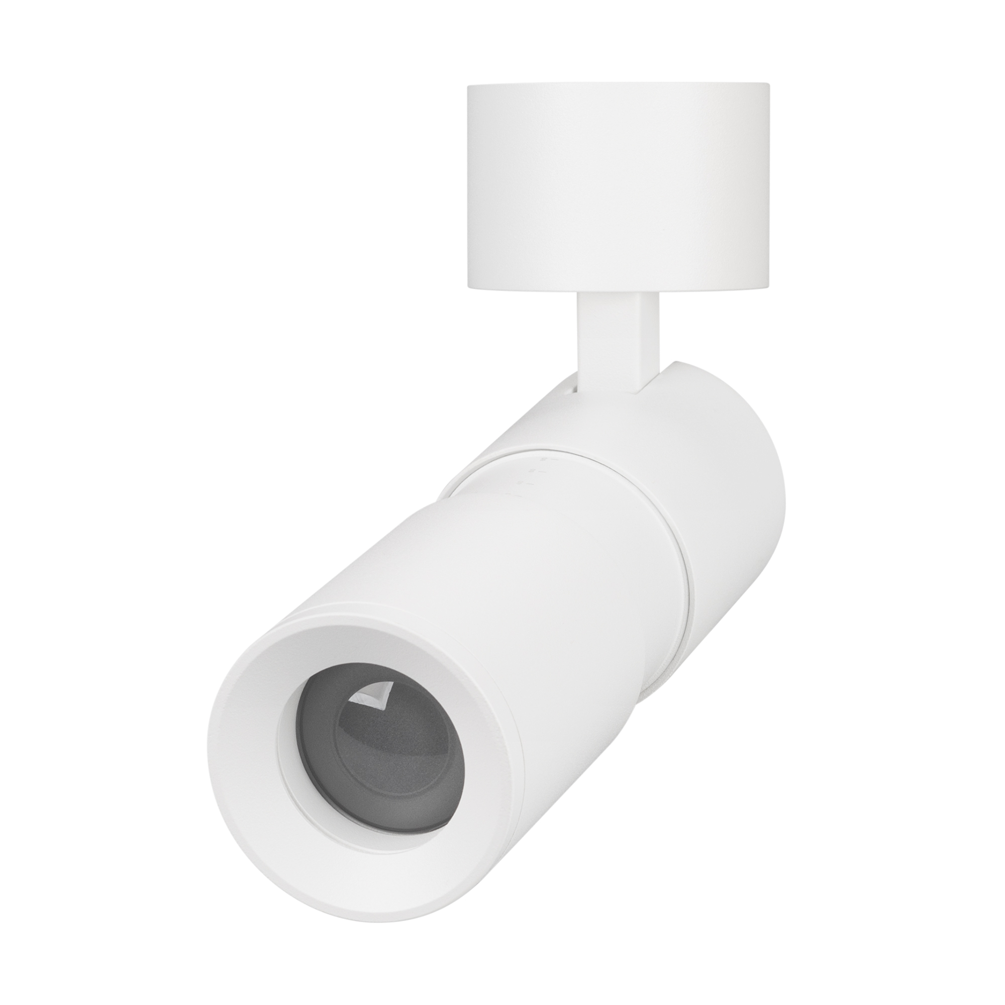 Накладной откидной поворотный светильник, 12Вт. Цвет свечения ДНЕВНОЙ 4000K, световой поток 720 лм, 60 лм/Вт, регулируемый угол 8-80°, CRI>90. Корпус круглый, металл, цвет белый, IP20. Размеры DxHxL Ø55x132~163,5 мм. Размер чаши Ø60,7x33,5 мм. Входное напряжение AC220-240V, мощность 12Вт. Драйвер встроенный (24-40V, 300 мА). Пульсация <1%.