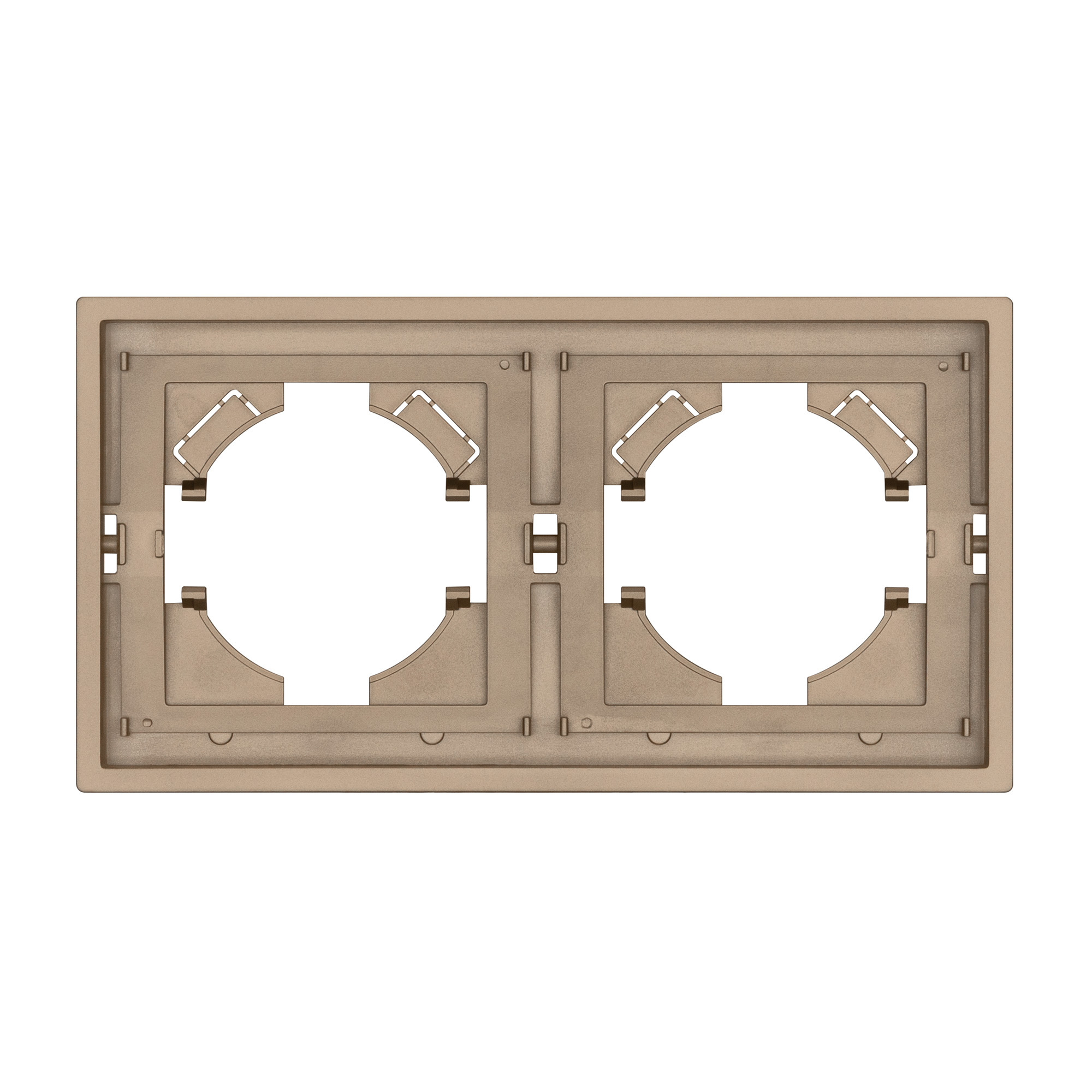 Корпус рамки выполнен в золотом цвете и имеет матовое покрытие, что придает изделию приятные тактильные свойства. Высота рамки составляет 9 мм, что позволяет эффективно интегрировать рамку в интерьерные решения любого уровня сложности.