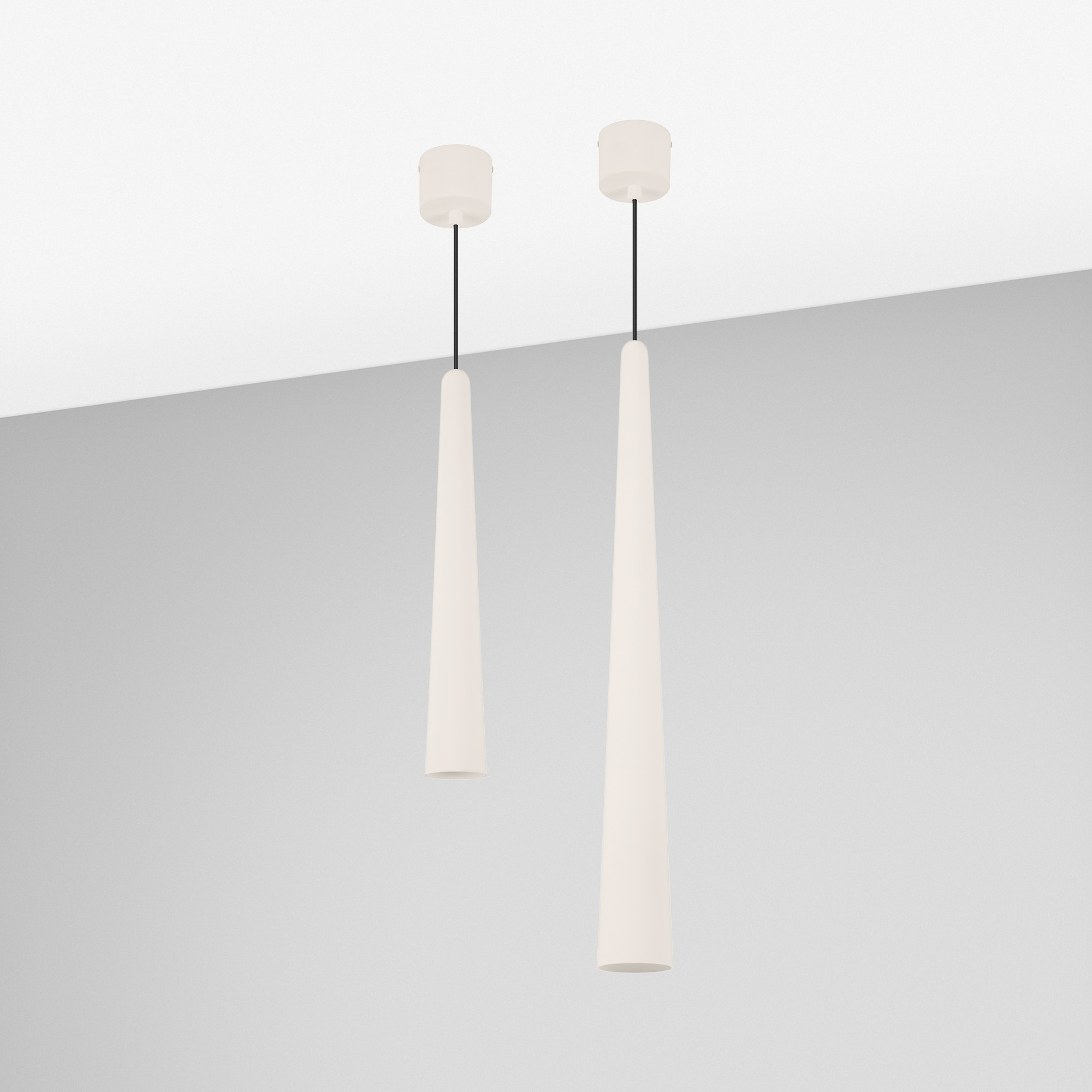 Подвесной светильник. Мощность 5 Вт, св. поток 400 лм, световая эффективность 70 лм/Вт, теплый 3000K, CRI>92, угол 36°, напряжение питания 230 В. Кремовый конусообразный вытянутый корпус из алюминия, линза из PMMA, степень защиты IP20. Размер: диаметр 57 мм, высота 400 мм. Монтаж подвесной, длина подвеса 2000 мм, регулируемая. В комплекте 2 вида чаш. Габариты встраиваемой чаши: Ø 80x41 мм. Габариты накладной чаши Ø80x60 мм. Драйвер 2,8-12В, 500 мА, пульсация <1%.