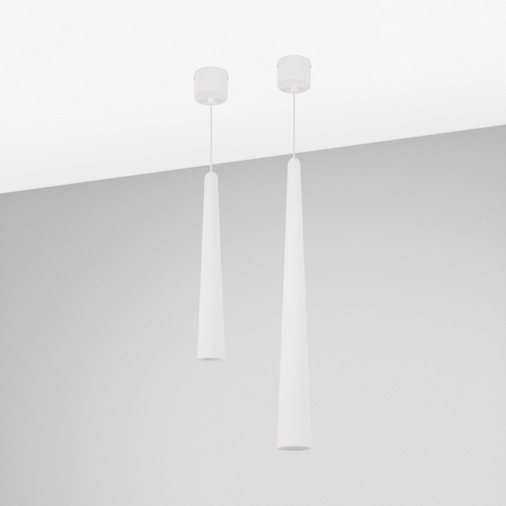 Подвесной светильник. Мощность 5 Вт, св. поток 400 лм, световая эффективность 70 лм/Вт, теплый 3000K, CRI>92, угол 36°, напряжение питания 230 В. Белый конусообразный вытянутый корпус из алюминия, линза из PMMA, степень защиты IP20. Размер: диаметр 57 мм, высота 400 мм. Монтаж подвесной, длина подвеса 2000 мм, регулируемая. В комплекте 2 вида чаш. Габариты встраиваемой чаши: Ø 80x41 мм. Габариты накладной чаши Ø80x60 мм. Драйвер 2,8-12В, 500 мА, пульсация <1%.
