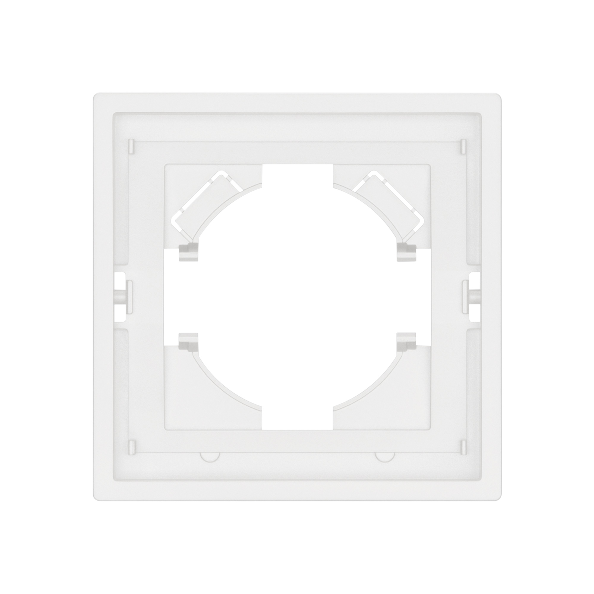 Корпус рамки выполнен в белом цвете и имеет покрытие Soft-Touch, что придает изделию приятные тактильные свойства. Высота рамки составляет 9 мм, что позволяет эффективно интегрировать рамку в интерьерные решения любого уровня сложности.