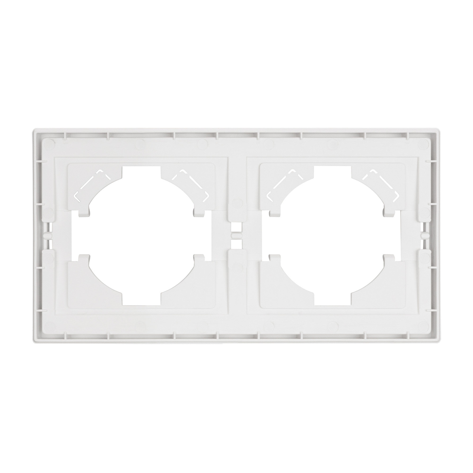 Рамка пластиковая на 2 поста, под встраиваемый механизм. Цвет - матовый белый, с Soft-Touch покрытием. Уровень герметичности IP20. Ориентация монтажа горизонтальная. Габаритные размеры: длина 150 мм, ширина 80 мм, высота 9 мм. Гарантийный срок 12 мес.