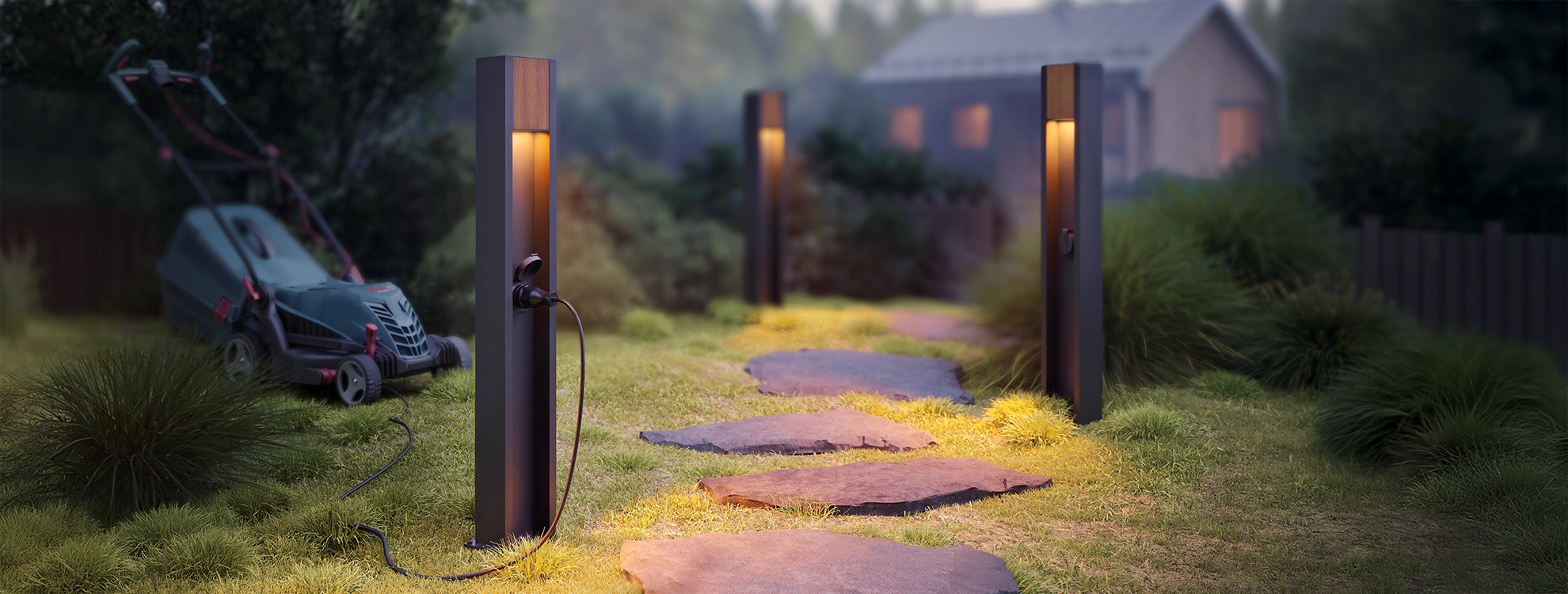 Два варианта светильника: 1) стандартная модель с защитой IP65; 2) модель с защитой IP54 и герметичной розеткой 230 В на корпусе для подсоединения садовой техники. Второй вариант не рекомендуется использовать в местах, где возможно прямое попадание струй воды.